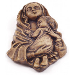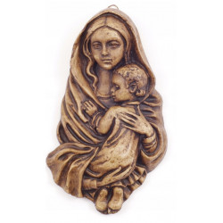 Płaskorzeźba przedstawiająca Matkę Boską z dzieciątkiem.